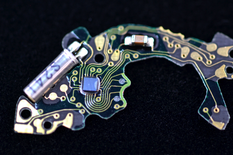 このICセンサーは、衝撃発生時にステップモーターへ流れる電力量を調整することで、衝撃時でも歯車が誤作動しないように制御することが可能でした。